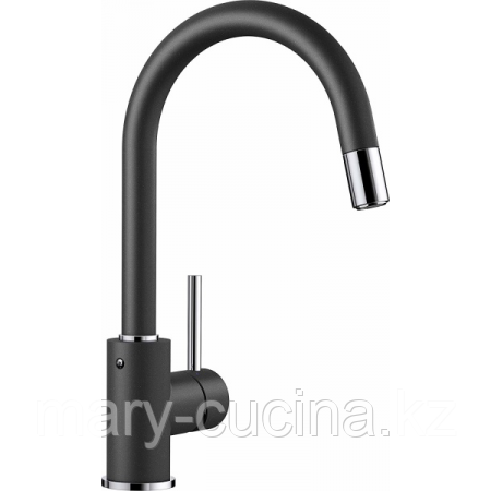 526146, Silgranit, высокий излив, вращающийся на 360°, шланг выдвижного излива в нейлоновой оплетке, керамический дисковый картридж, цвет черный, пр-во Германия